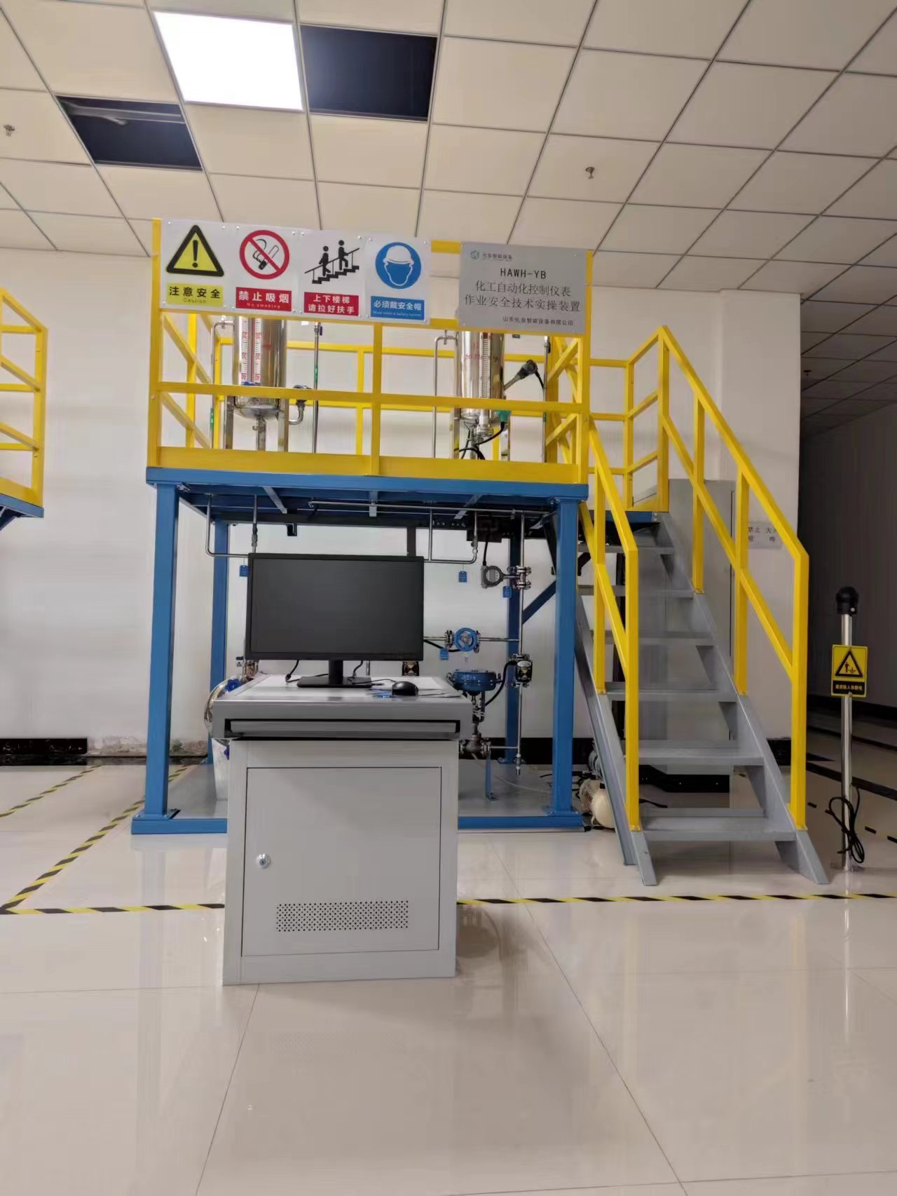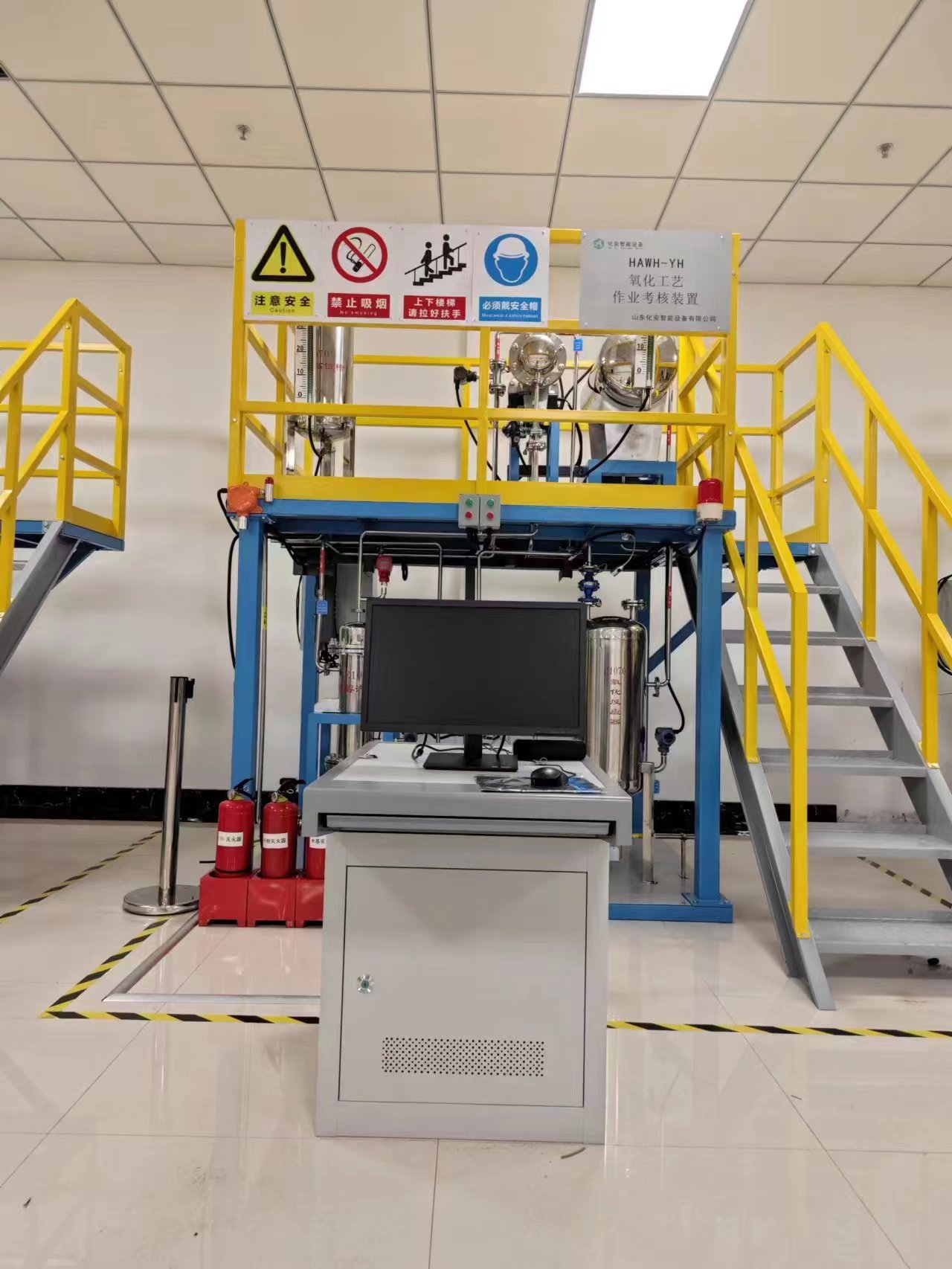 本裝置結(jié)合《安監(jiān)總宣教(2014)139號國家安全監(jiān)管總局關(guān)于印發(fā)特種作業(yè)安全技術(shù)實際操作考試標(biāo)準(zhǔn)及考試點設(shè)備配備標(biāo)準(zhǔn)(試行)的通知》的標(biāo)準(zhǔn),參照《首批重點監(jiān)管的危險化工工藝安全控制要求、重點監(jiān)控參數(shù)及推薦的控制方案》安監(jiān)總管三〔2009〕116號標(biāo)準(zhǔn)。定制開發(fā)用于?;a(chǎn)從業(yè)人員培訓(xùn)和考試的設(shè)備系統(tǒng)。裝置整體布置協(xié)調(diào)、操作便捷、牢固可靠;管路布置合理有序、布線規(guī)范整齊;裝置具有工業(yè)化氣息,大氣美觀;所采用的操控軟件在國內(nèi)應(yīng)用極為廣泛,完全與工業(yè)實際接軌。裝置安全設(shè)計規(guī)范完善,配置漏電保護和載保護裝置,管線及設(shè)備布置既方便操作,也防止碰傷或絆倒。實訓(xùn)室整體氛圍布置,安全標(biāo)識、操作要領(lǐng)、工藝掛圖等配套完善。隨機資料如操作說明書、配置清單、PID圖、電氣圖等配套齊全。重點監(jiān)管的危險化工工藝安全技能實操考核裝置分別有占地長2.7m和長2m的兩種,均包含化工自動化控制儀表作業(yè)實操考核裝置及15個危險化工工藝: